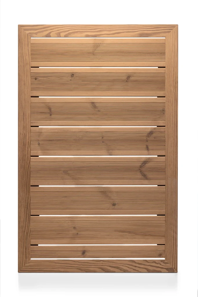Bu profil modelinde ahşap üzerine uygulanan özel desen ile ıslak zeminlerde daha güvenli ve konforlu bir hareket imkanı sunmaktadır.